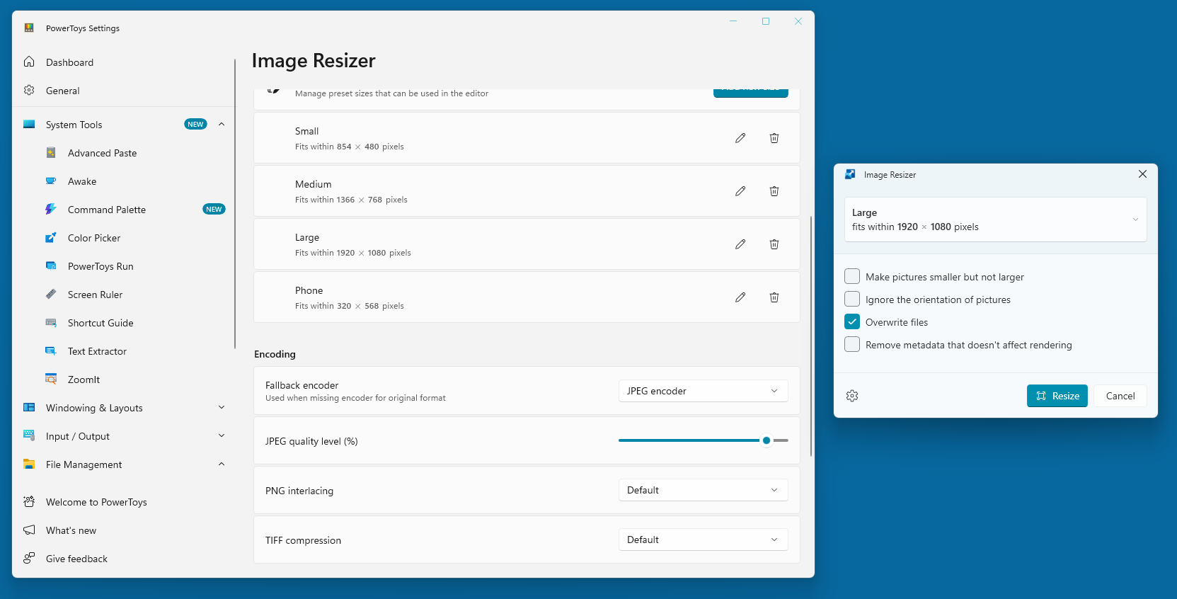 Image Resizer in Microsoft PowerToys is a handy utility for quickly resizing images in bulk, making it an essential tool for professionals working with large image collections. Engineers, architects, and surveyors often deal with project documentation, aerial photos, and technical drawings, which must be resized for presentations, reports, or archives. Instead of manually adjusting each image in a photo editor, Image Resizer allows users to apply preset or custom dimensions instantly. For example, a civil engineer handling drone-captured images from a construction site can uniformly resize high-resolution photos into smaller versions for easy sharing with project stakeholders—without compromising aspect ratios or quality.